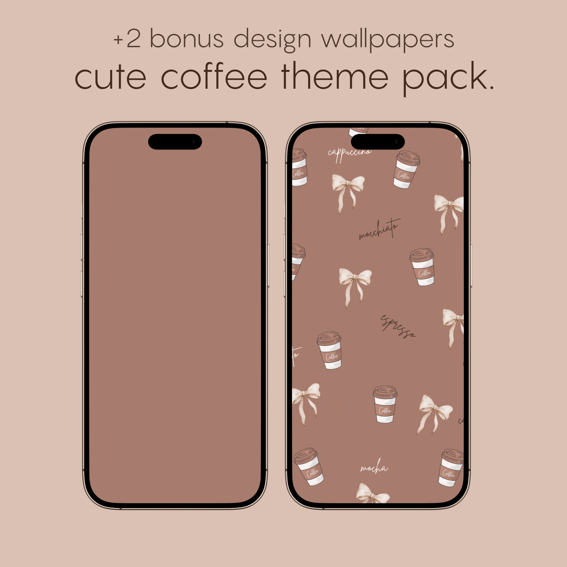 bring the warmth of your favourite café straight to your phone. this cute coffee theme pack is designed for all the coffee lovers who adore a coat, neutral aesthetic. with its soft mocha tones, creamy beige accents, and minimal latte-inspired icons, your screen will screen will feel as coat as your morning brew. our cute coffee theme is perfect for neutral tech lovers too! 🤎